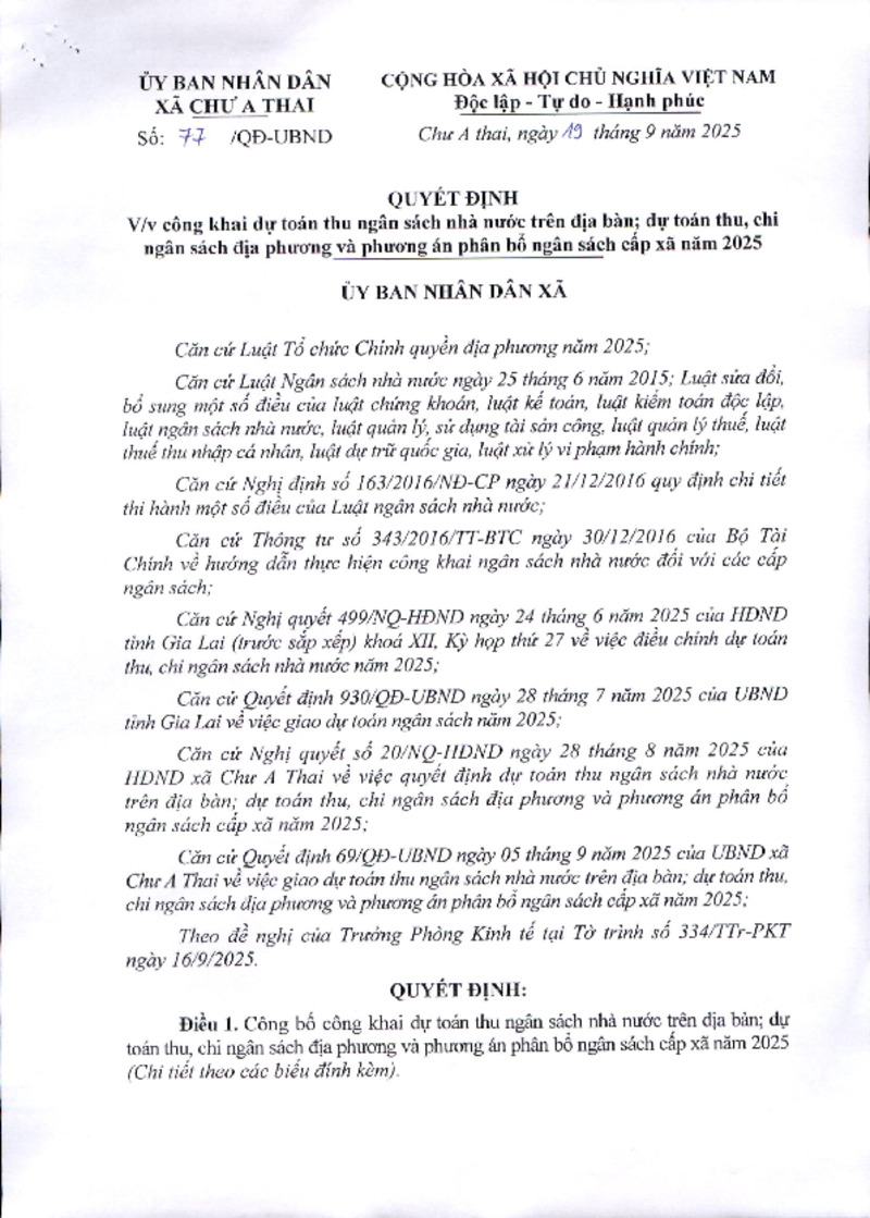 Tiêu đề văn bản | QĐ Công khai dự toán thu ngân sách nhà nước trên địa bàn; dự toán thu, chi ngân sách địa phương và phương án phân bổ ngân sách cấp xã năm 2025 | ||