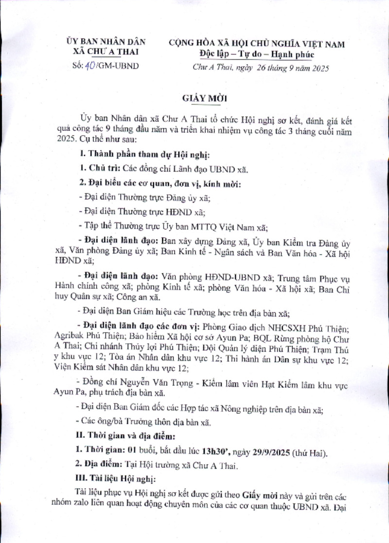 Giấy mời họp sơ kết 9 tháng năm 2025 29/09/2025, 10:31:20 - Lượt xem: 0 Tweet Thêm vào danh sách Báo xấu Thông tin tài liệu Giấy mời họp sơ kết 9 tháng năm 2025