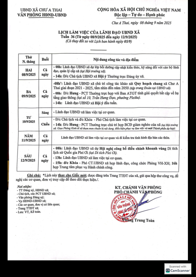 Lịch làm việc của Lãnh đạo UBND xã Tuần 36 08/09/2025, 08:29:43 - Lượt xem: 5 Tweet Thêm vào danh sách Báo xấu Thông tin tài liệu Lịch làm việc của Lãnh đạo UBND xã Tuần 36