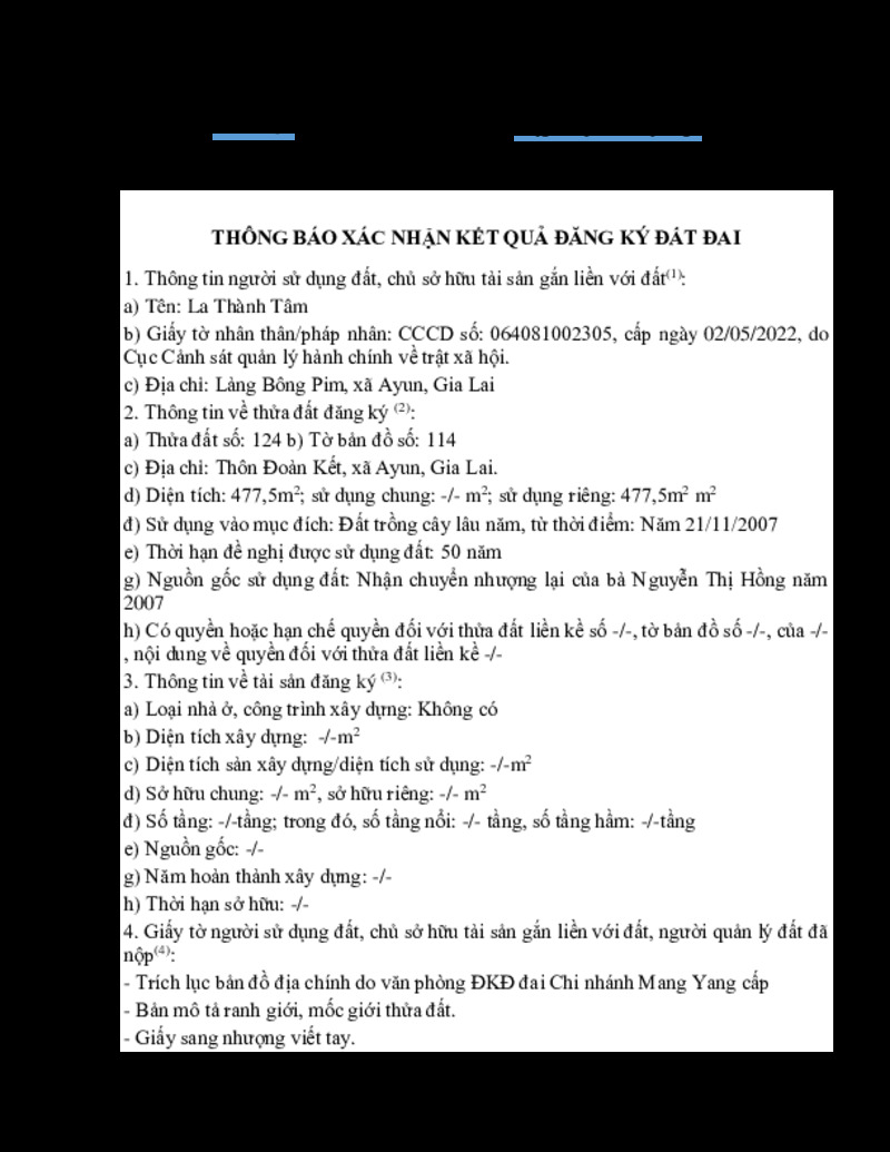 Tiêu đề văn bản | Thông báo kết quả ĐKĐĐ (Tâm1) | ||