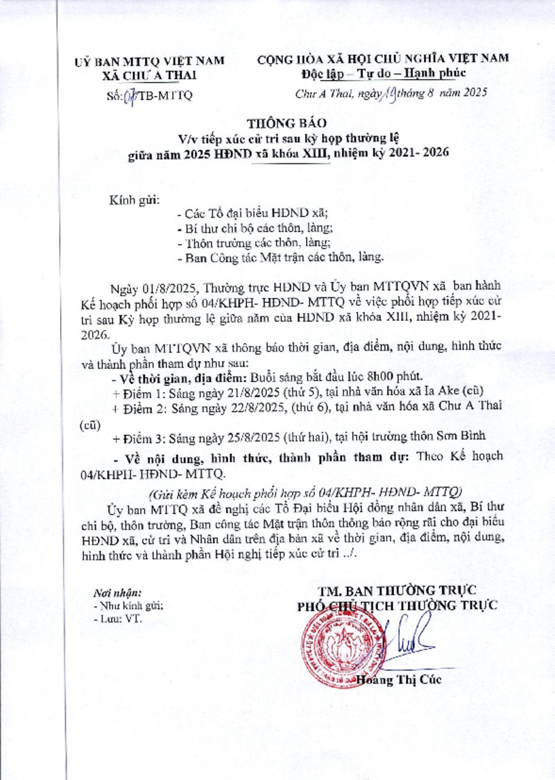 Số hiệu | 07/TB-UBND | Cơ quan ban hành | UBMTTQVN xã Chư A Thai |