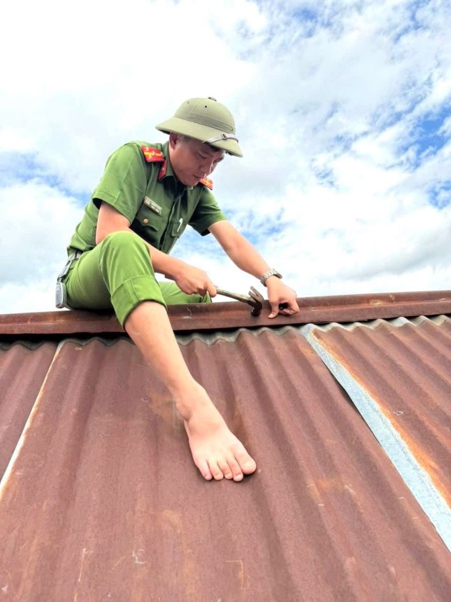 Hình ảnh các lực lượng Công an, QSĐP, cán bộ hỗ trợ nhân dân khắc phục hậu quả sau bão.